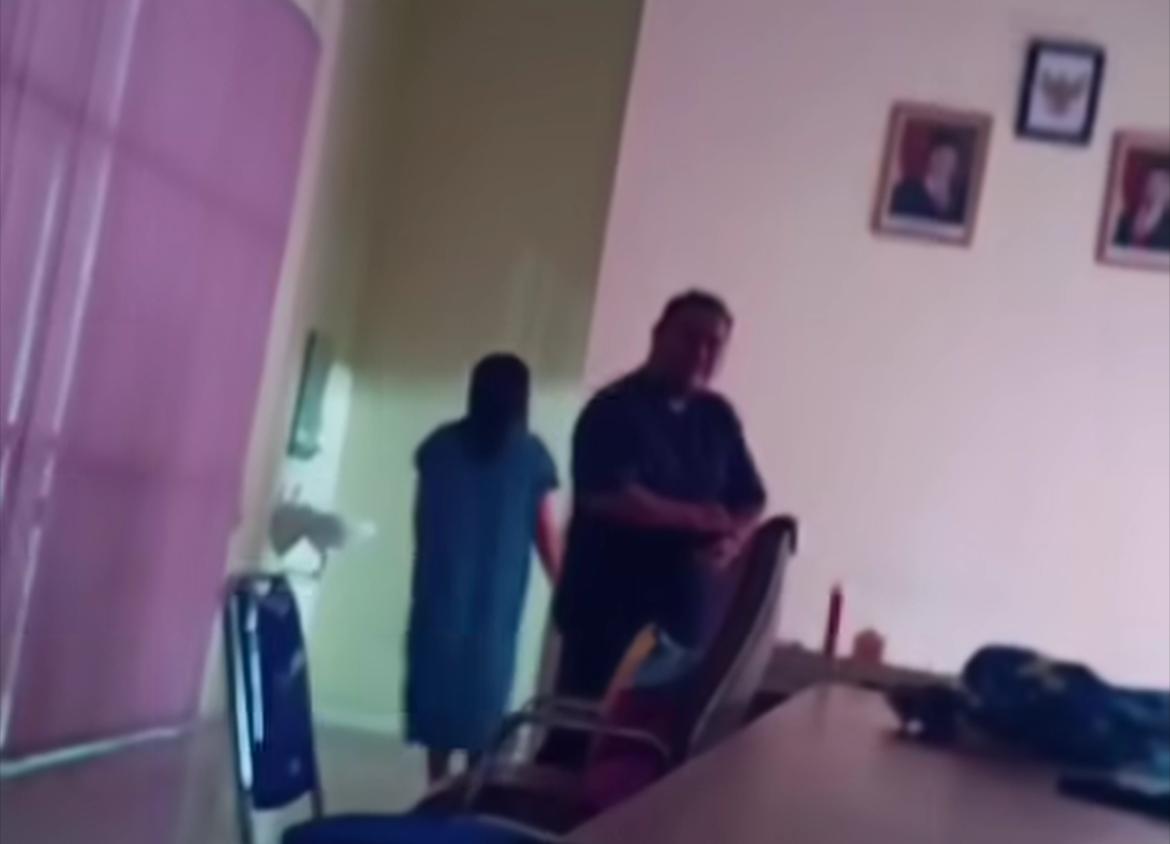 Video yang berdurasi 2.18 menit tersebut memperlihatkan pasangan yang diduga berada di ruang Kepala Dinas dengan perempuan yang mengenakan pakaian daster serta terlihat lelaki di sampingnya.